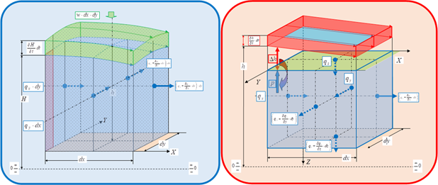 - Legea conservării masei care stabileşte că orice modificare a masei de apă din volumul elementar trebuie sã fie compensată de o modificare a debitului de apă care iese din acel volum sau o modificare a masei de apă stocatã în acel volum.